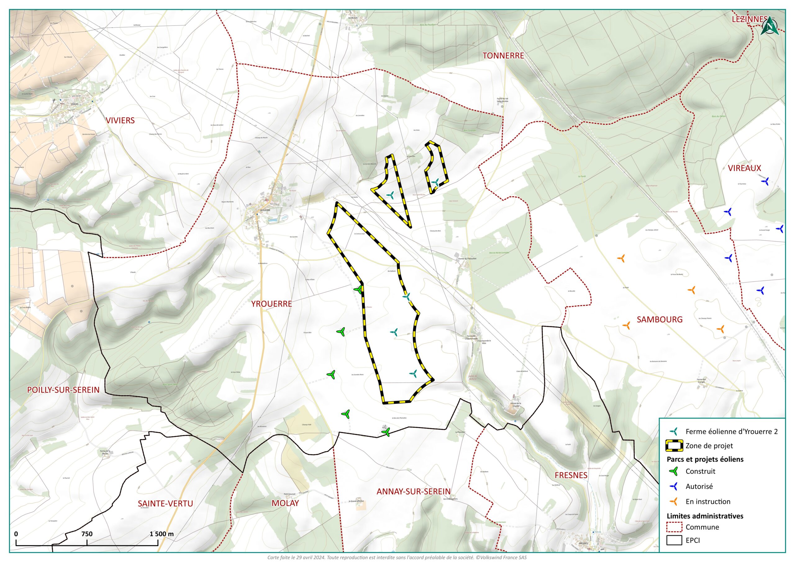 Le projet éolien d’Yrouerre 2 est situé sur la commune d’Yrouerre, en extension du parc existant d’Yrouerre.