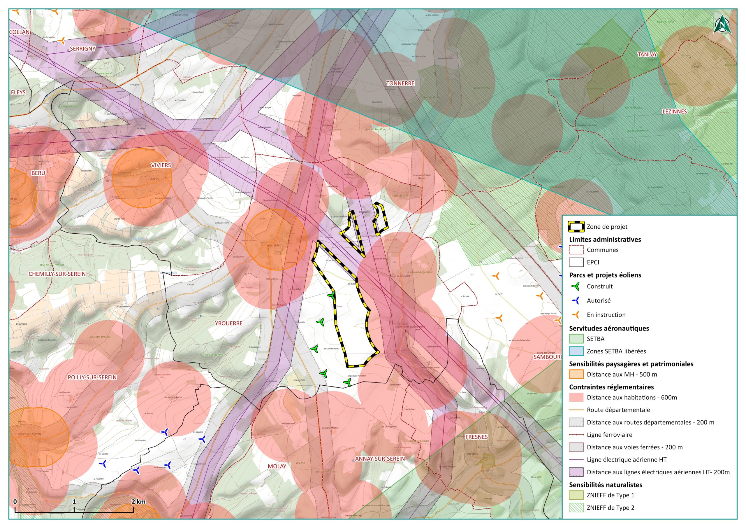 Le département de l’Yonne dispose de nombreux atouts pour développer une activité de production d’électricité d’origine éolienne. Le secteur d’étude se caractérise par des vents entre 6,6 m/s à 100 m, particulièrement propices pour le développement de projets éoliens.